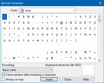 Transcript: Special characters or symbols selection